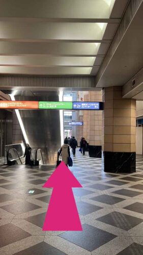 キャロットタワーを通り抜けたら外に出て、左に曲がります。(右に曲がってもほとんど所要時間は変わりませんが、少し道が入り組んでいます)