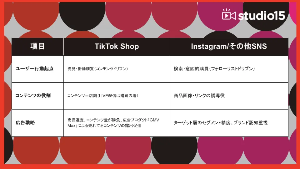 クリエイターの起用やアカウント運用が直接の購買につながるTikTok Shopでは、一般的なECに求められるマーケティング手法と異なりTikTokの仕様をうまく活用することで成果をあげることが可能です。