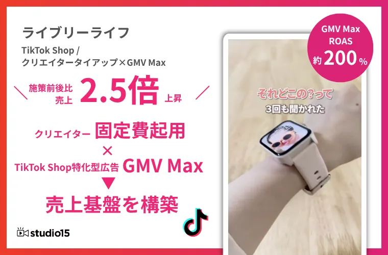 【ライブリーライフ様 TikTok Shop施策】固定費起用×GMV Maxで施策前後比の売上が2.5倍に!