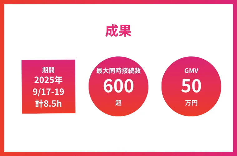 本施策では、スペックの説明だけでなく「リアルタイムの使用デモ」×「コメントへの即時回答」×「限定キャンペーン訴求」の三位一体で構成。視聴者が参加しながら体感できる設計により、高いエンゲージメントを実現しました。