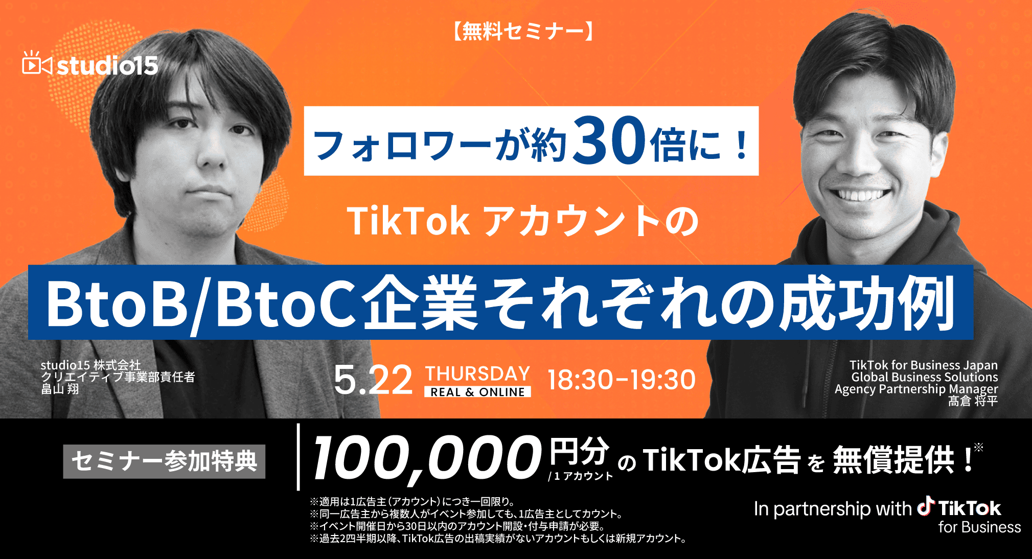 - 参加者全員: TikTok広告費10万円分を無償提供!